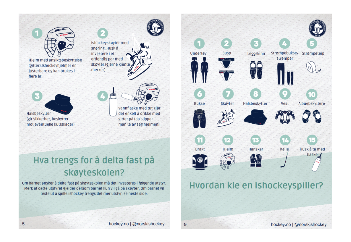 Å gå på skøyter eller å spille ishockey krever utstyr som for mange kan være ukjent. Utstyrsguiden er laget for å sikre at ishockeyutstyret brukes riktig og ivaretas slik at det holder lengst mulig.
