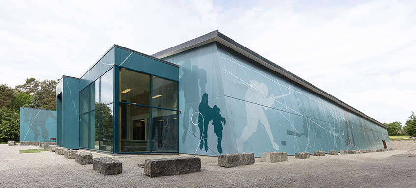 Anlegget ble bygget over et eksisterende utendørsanlegg fra 1995. Kjøleflaten til anlegget er gjenbrukt, og varmegjenvinning nyttes til oppvarming av garderober og fellesarealer i hallen. Utformingen av hallen og de tekniske anleggene er gjort i et forprosjekt og i tett samarbeid med arkitekt og fagspesialister innenfor kjøleteknikk, elektro, og VVS. Hallen har sedumtak og fasaden er dekorert med skøytemotiver. Hallen glir bra inn i omkringliggende arealer og den oppleves ganske liten og lav, da terrenget rundt skråner opp fra hallen. Fra baksiden gir sedumtaket en naturfølelse, i motsetning til andre typer tak.